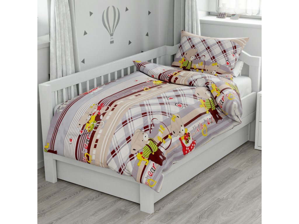 HELLO BEAR szürke pamut baba ágyneműhuzat