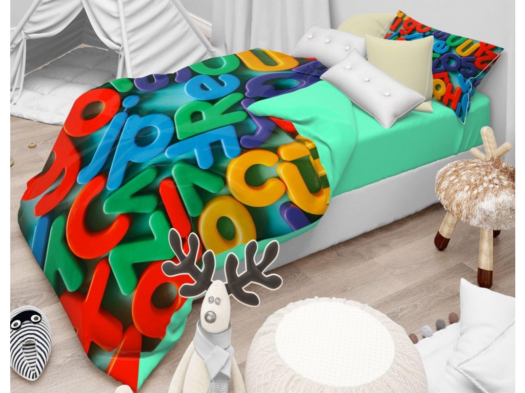 Minőségi ágyneműhuzat játékos mintákkal feldobja háloszobáját. Állandó színei nem veszítenek szépségükből sok mosás után sem. Minőségi pamutból készült, mely lágy, könnyű és légáteresztő. Ráadásul a pamut ideális allergia, asztma és érzékeny bőr esetén. Az ágynemű betűs mintával és nem feltűnő cipzár zárással rendelkezik.