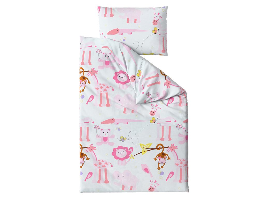 Renforcé pamut bölcső ágyneműhuzat Állatkert rózsaszín