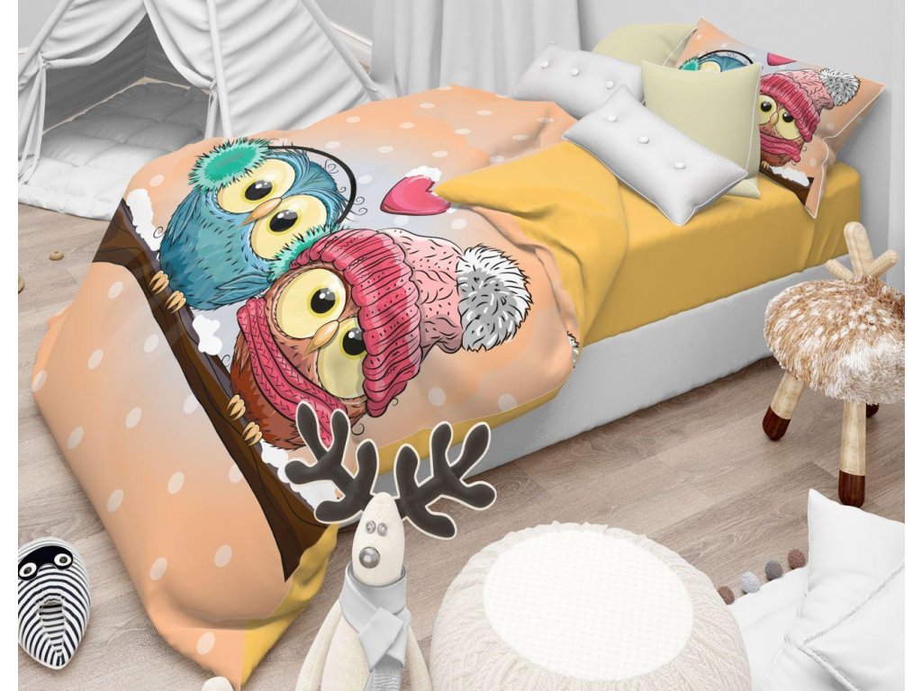 Téli baglyok narancssárga pamut baba ágyneműhuzat