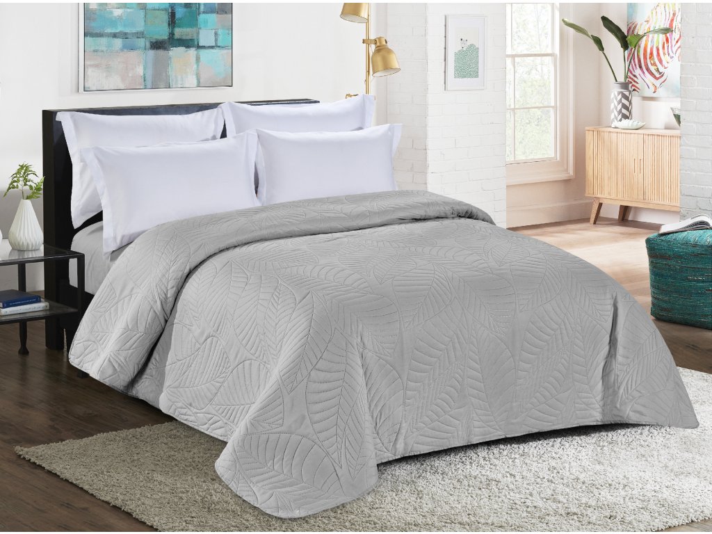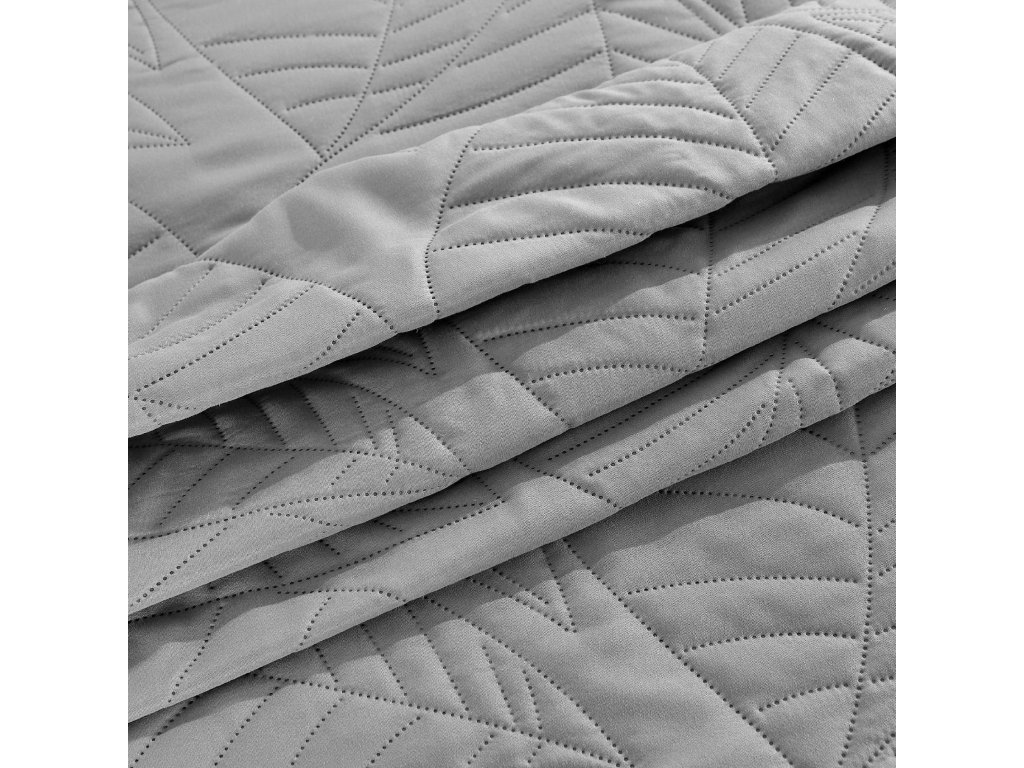 Világosszürke LEAVES mintás ágytakaró megvédi az ágyneműt, valamint a paplant és párnákat a portól. Meleg éjszakákon könnyű takaróként szolgál. A szürke színt kombinálja dekoratív párnák és ágynemű semleges tónusaival. Az ágytakaró fontos és praktikus kiegészítője a hálószobának.