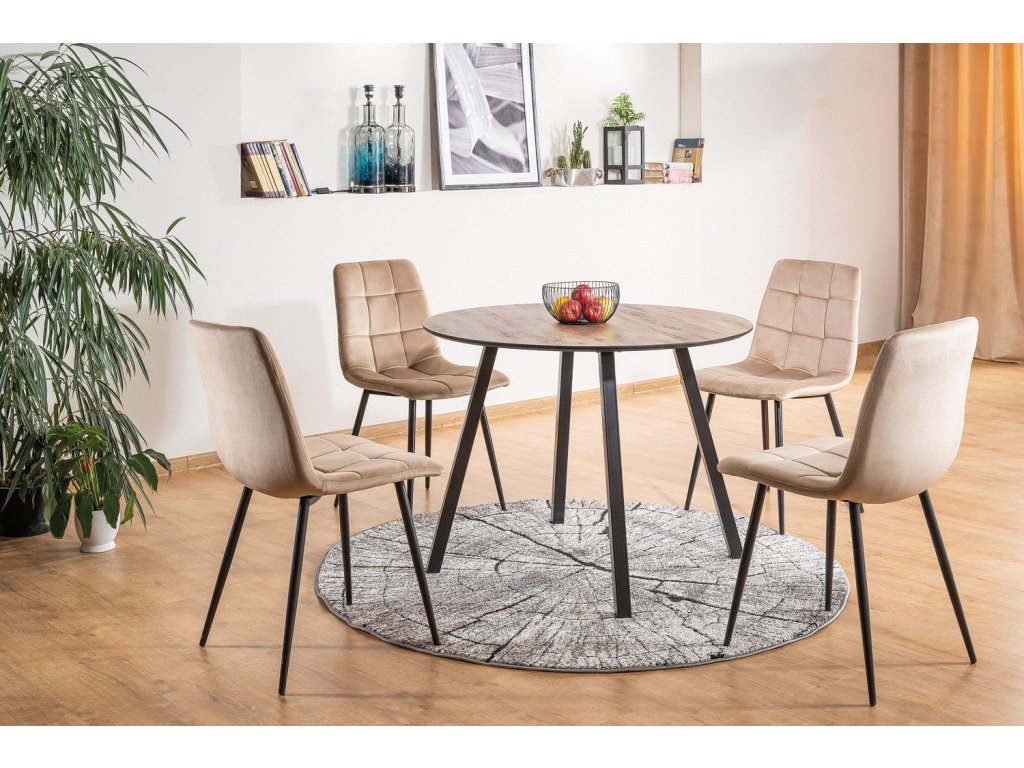 Fedezze fel az Étkezőasztal OAKLAND dió dekorban 100x100 varázsát. A tiszta vonalak és az egyszerű kialakítás az északi stílus elengedhetetlen része. A természetes anyagok tökéletes és sosem megunható kombinációja mindig elbűvöl. A masszív laminált és furnérlapot erős fekete kialakítású fém lábak támasztják alá, melyek természetes dió dekorban pompáznak. Az első pillantásra lenyűgöznek a stabil és egyedülállóan formált lábak.