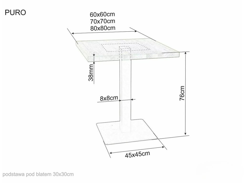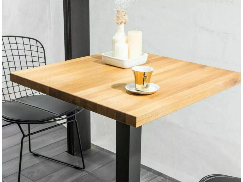 Fekete étkezőasztal tölgyfa asztallappal PURO 70x70