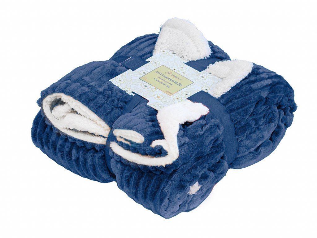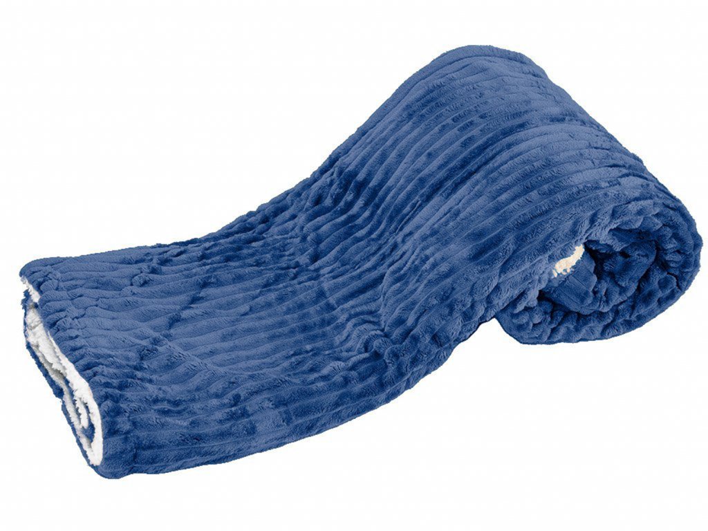Luxus világoskék báránybőr takaró mikroplüssből csíkokkal, 150x200 cm