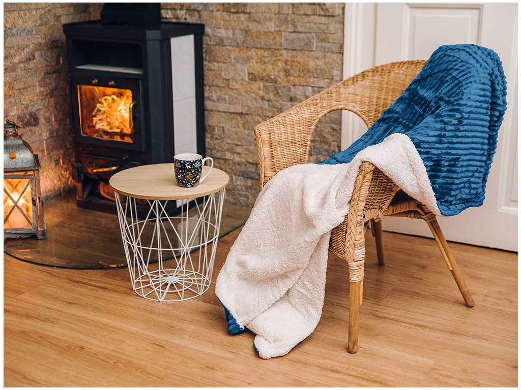 A hideg szín elősegíti az ellazulást egy fárasztó nap után. A kék árnyalatú takaró ideális megoldás a pihenéshez. Ösztönözze a kikapcsolódást és elevenítse fel a nyár emlékeit . A mennyei ihlet könnyen kombinálható más színekkel a belső térben.