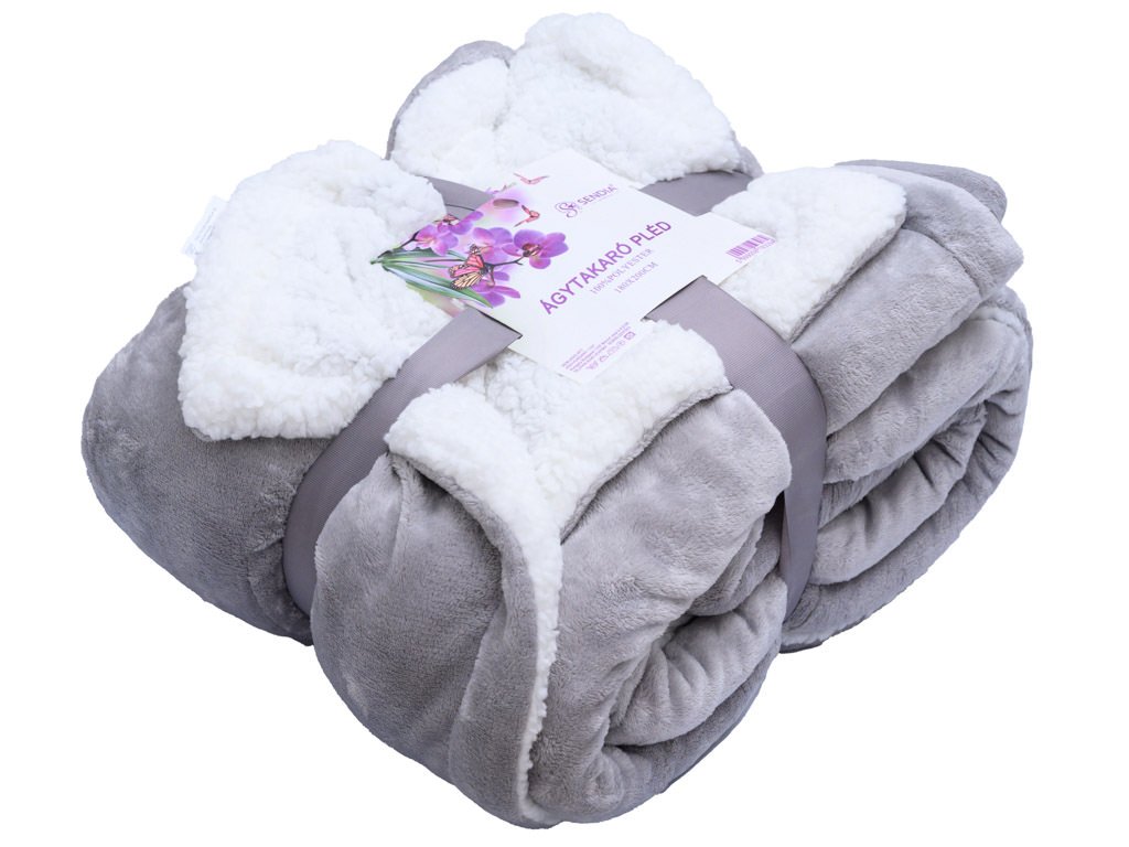 Luxus világosszürke mikroplüss bárány pléd, 180x200 cm