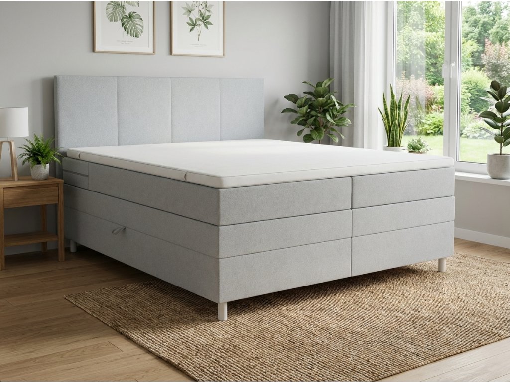 Kárpitozott boxspring ágy CARINA 160x200 cm világosszürke NEVE 02