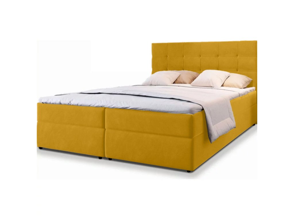 Kárpitozott boxspring ágy GLORIEN 160x200 cm mustárszínű COSMIC 120