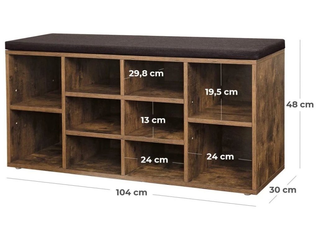 Cipősszekrény paddal TAYLOR 104x30x48 cm, rusztikus barna