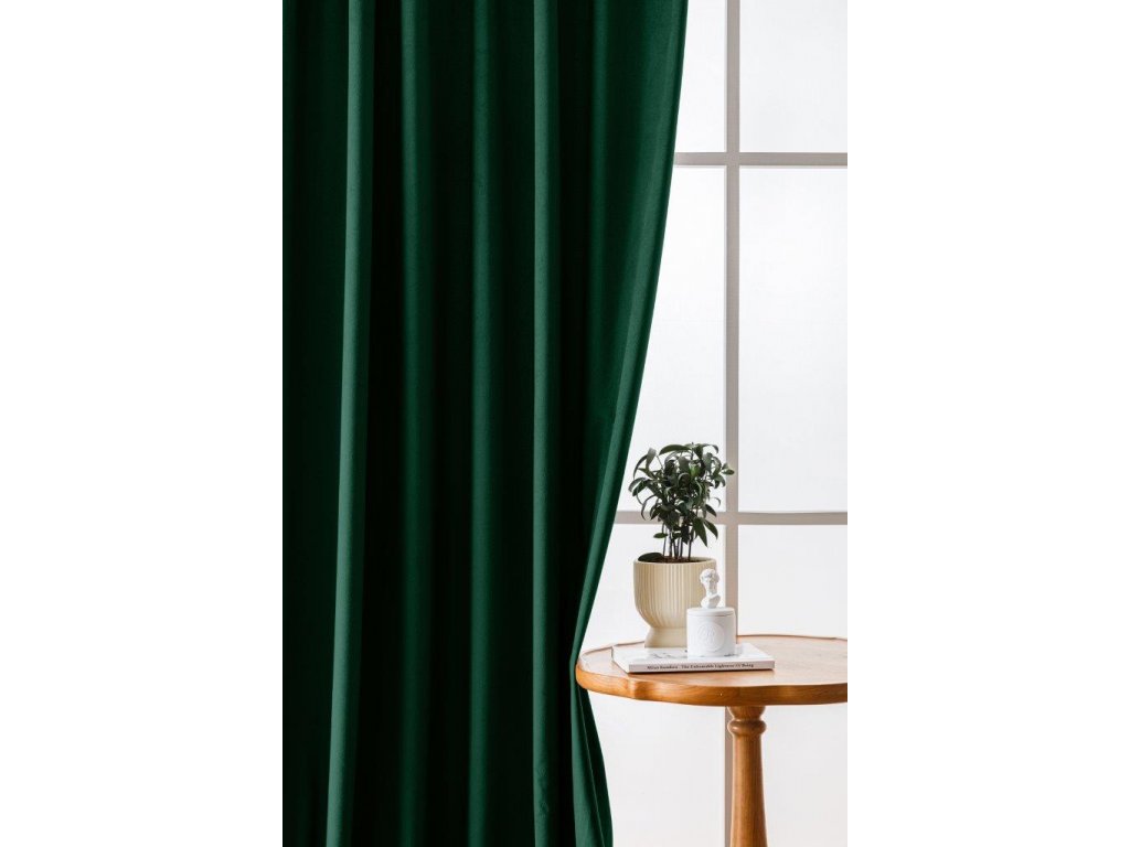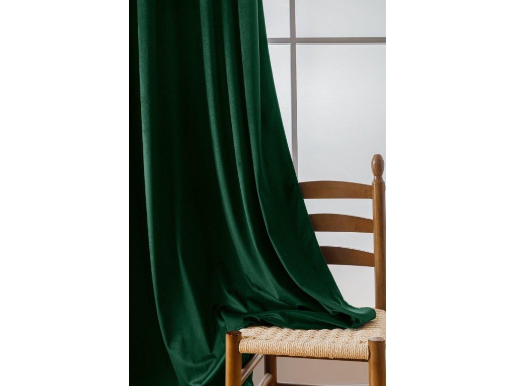 VELVET sötétzöld sötétítő függöny 140x250 cm (2 db), rojtos szalaggal