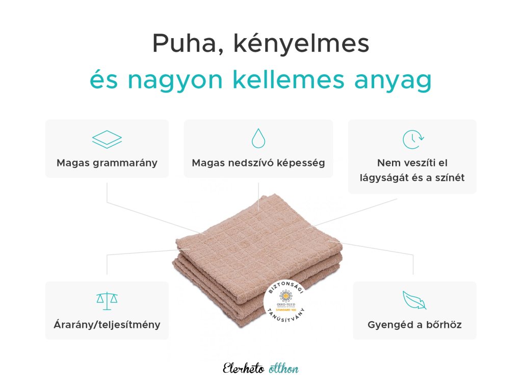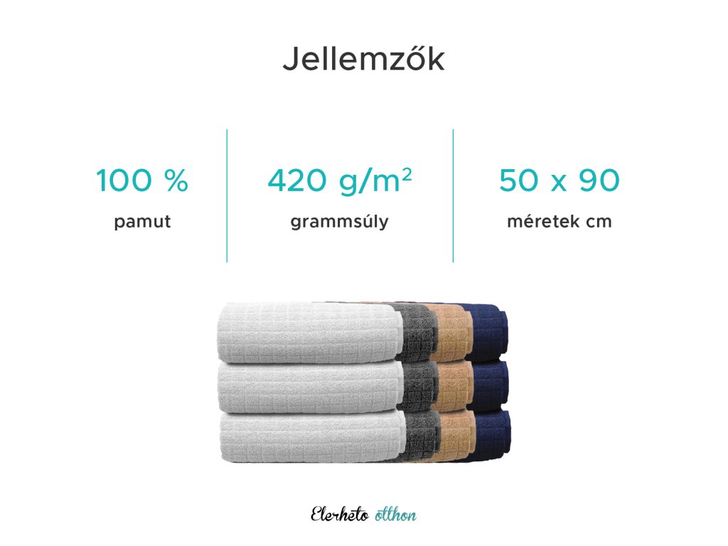 A 420 g/m2 súlyú törölközők kényelmet és ápolást biztosítanak bőrének. Kiváló minőségű pamutszálakból készültek, amelyek optimális nedvszívó képességet és puhaságot biztosítanak. A közepes grammsúly kényelmet és gyengédséget biztosít minden használat során, még az érzékeny bőr számára is .