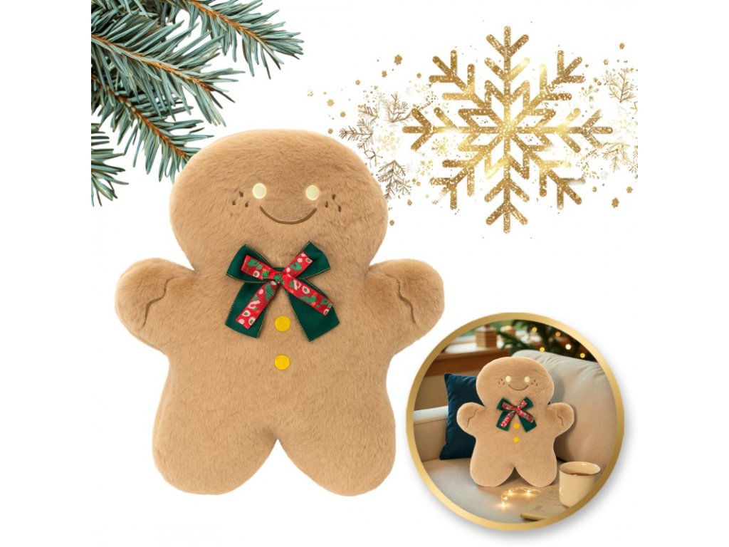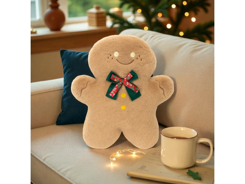 Bársonyos díszpárna mézeskalács formában GINGERBREAD, bézs