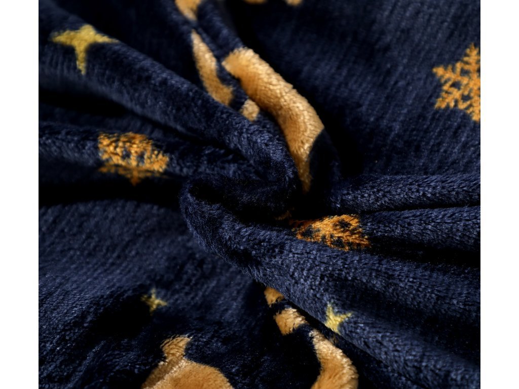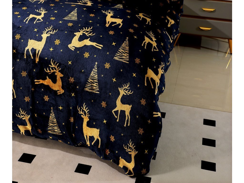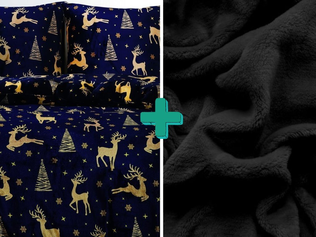 GOLDEN DEER sötétkék mikroplüss ágynemű + SOFT fekete mikroplüss lepedő 90x200 cm