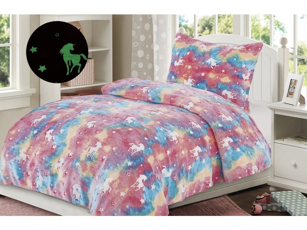 HORSE rózsaszín világító mikroplüss ágynemű + SOFT kék mikroplüss lepedő 90x200 cm
