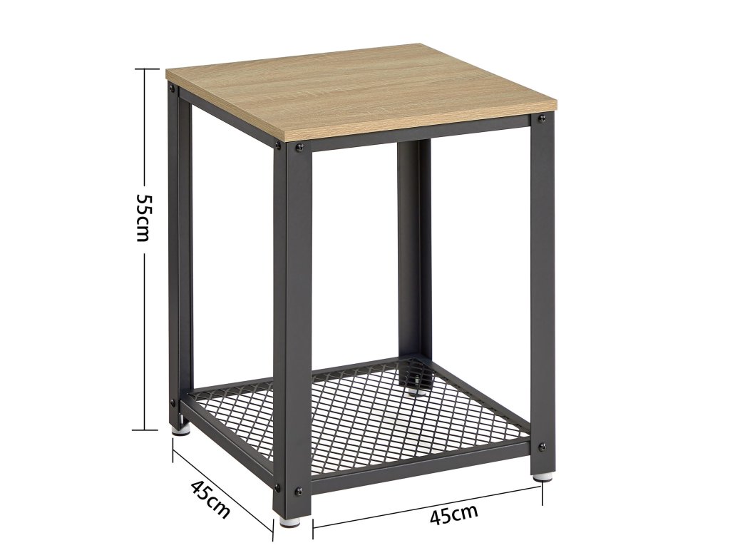 Kisasztal polccal TAYLOR SONOMA mérete 45 x 45 x 55 cm, praktikus és stílusos megoldás az otthonod számára. A sonoma tölgy dekor és a fekete fém szerkezet kombinációja modern és sokoldalú kiegészítővé teszi, amely remekül illik a nappaliba, hálószobába, vagy a dolgozószobába.