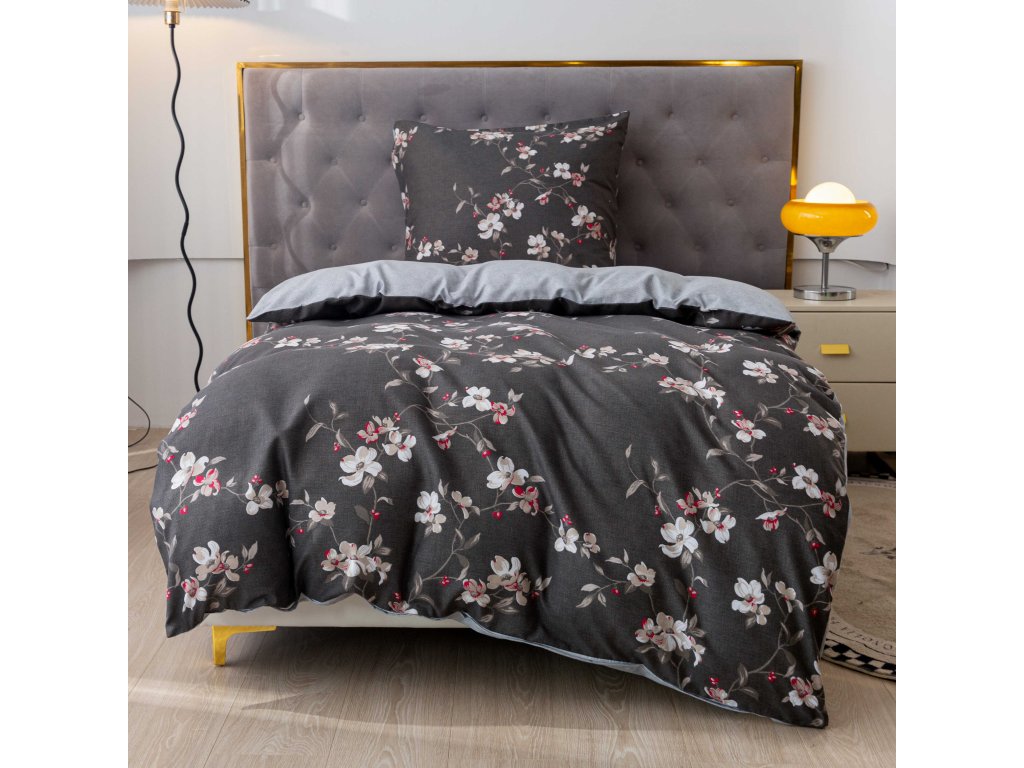 BLOSSOM szürke mikroszálas flanel ágyneműhuzat