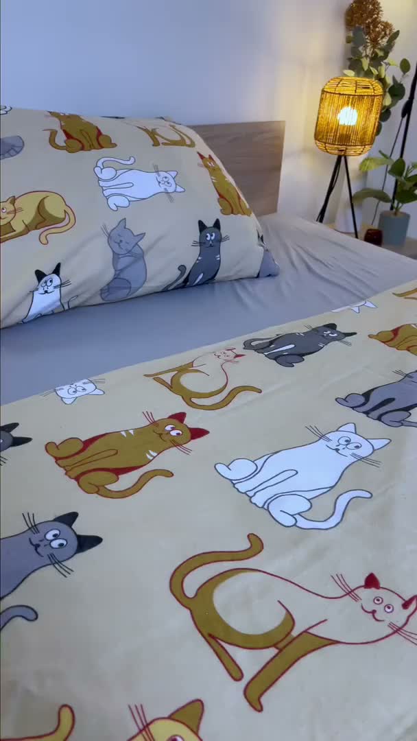 Flanel ágyneműhuzat COLORED CATS krém színben