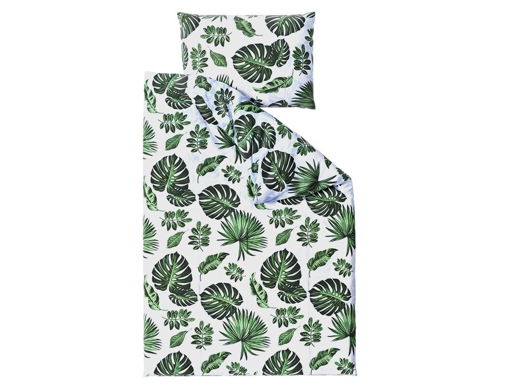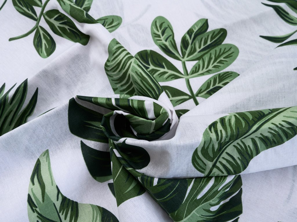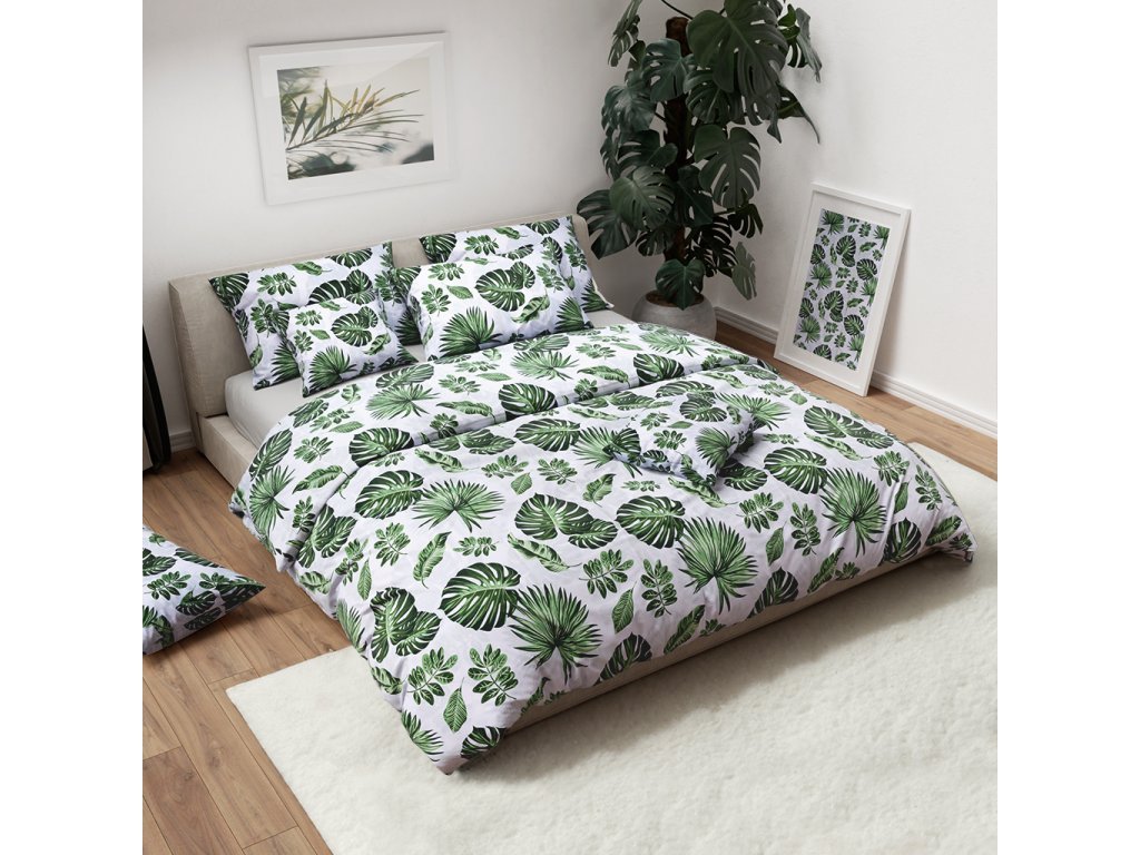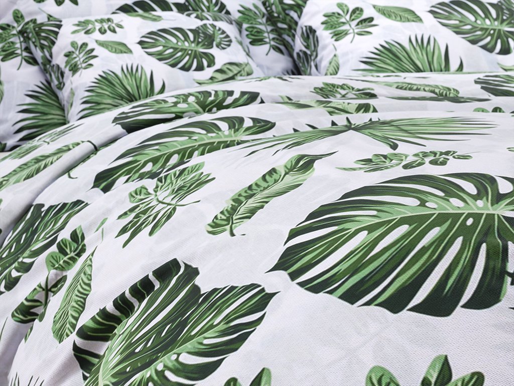 Flanel ágyneműhuzat ZÖLD LEVELEK fehér