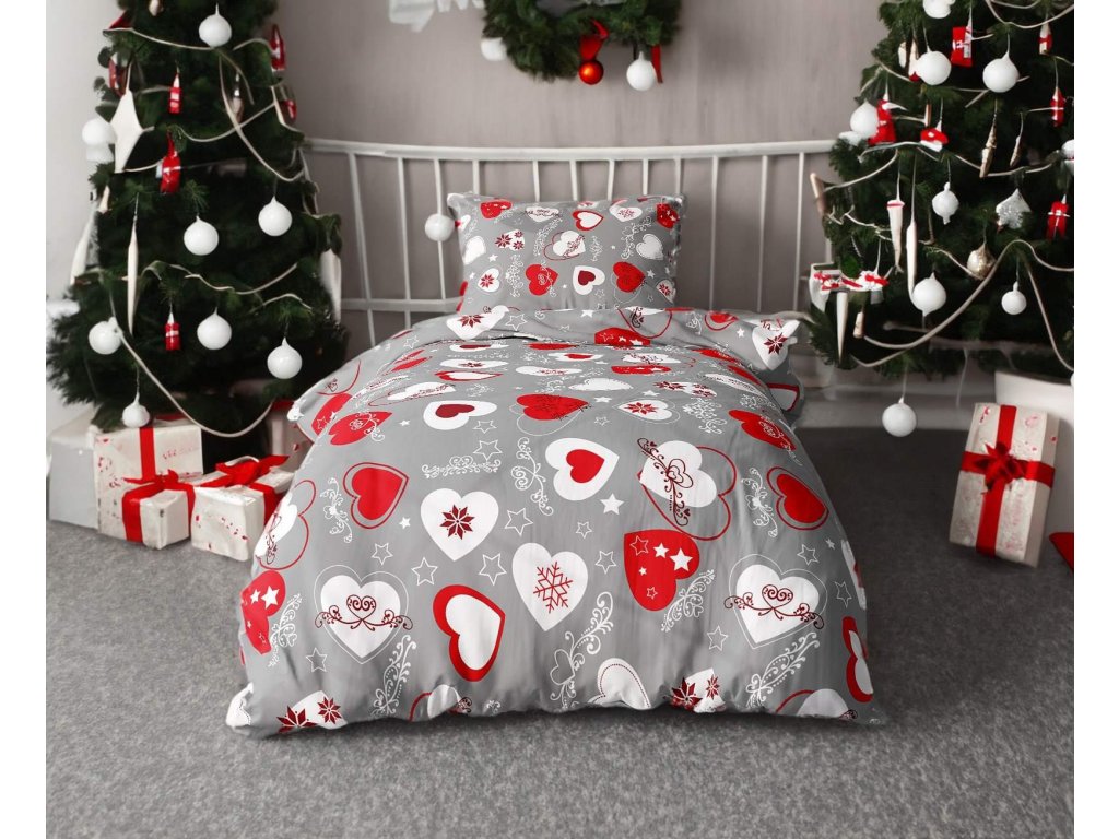 CHRISTMAS HEART szürke flanel ágyneműhuzat