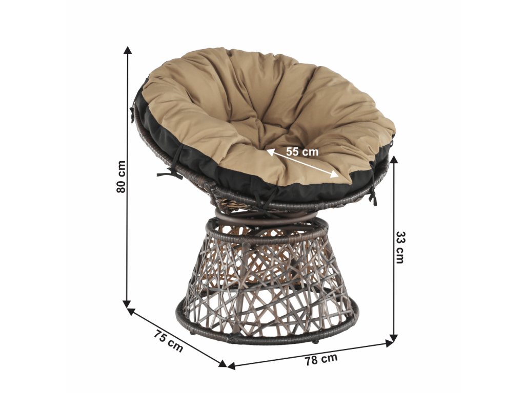 A forgatható szék RIVALO úgy lett tervezve, hogy modern dizájnt és maximális kényelmet ötvözzön. A fekete acélból és tartós műrattan fonatból készült stabil szerkezetének köszönhetően nemcsak belső terekbe, hanem teraszra és kertbe is kiválóan alkalmas. A vízálló, könnyen karbantartható párnázat minden időjárási körülmények között kényelmet biztosít. Forgómechanizmusa szabad mozgást tesz lehetővé, így különböző tevékenységekhez – a nyugodt olvasástól a baráti beszélgetésekig – ideális. Stílusos és funkcionális kialakítása eleganciát és praktikusságot kölcsönöz terének. Tegye minden pihenés pillanatát különleges élménnyé ezzel a sokoldalú darabbal, amely a tér központi elemévé és nyugalma oázisává válik. Élvezze a kényelmet, amely ötvözi a stílust és a célszerűséget.