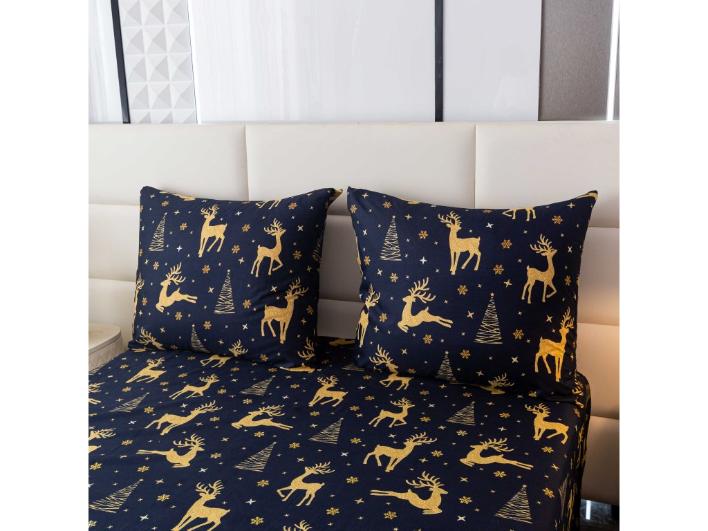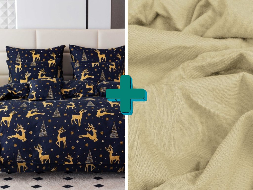 2 darab mikroplüss ágynemű garnitúra GOLDEN DEER sötétkék + Jersey EXCLUSIVE lepedő 180x200cm krém, kétszemélyes.