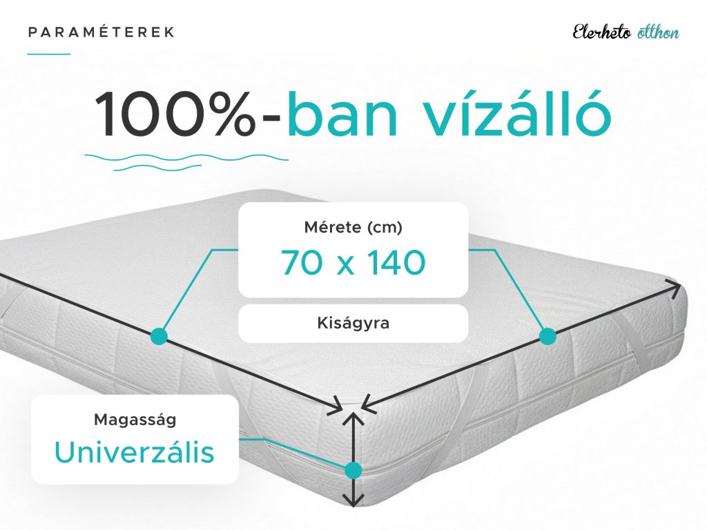 Gyerekágyba vagy első ágyba, amelynek mérete 70 x 140 cm, használjon ugyanekkora méretű matracvédőt. A sarkokban lévő bevarrt gumiknak köszönhetően könnyedén rögzítheti még magas matracokra is. A gumik rendkívül rugalmasak és erősek, a védő nem mozdul el alvás közben.