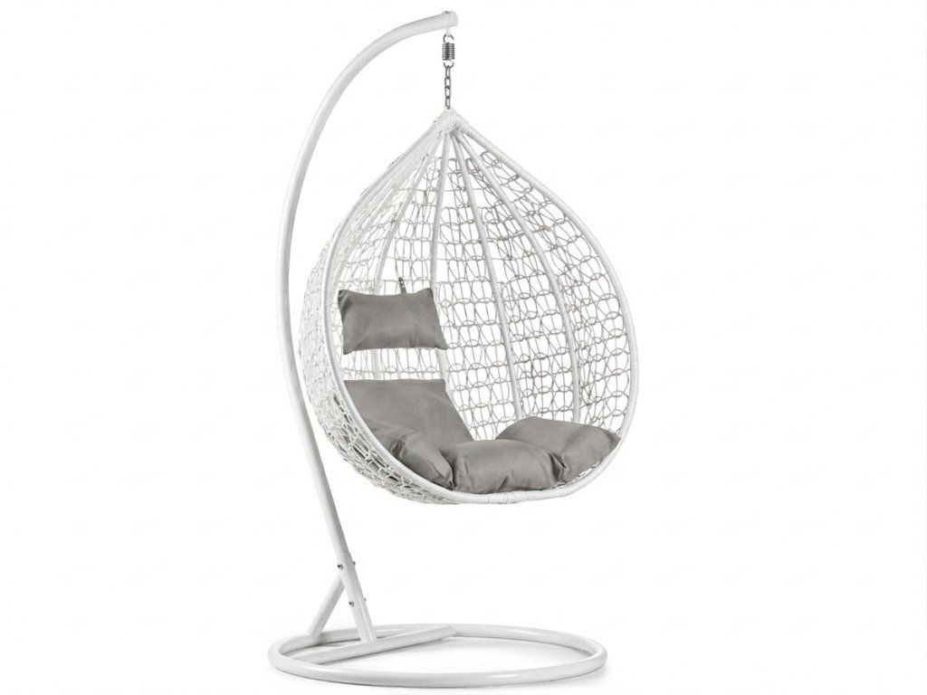 Fehér függőszék KOKON állvánnyal minden térből tökéletes pihenőhelyet varázsol. Csepp formája kellemes magánszférát teremt, ahol elbújhat egy könyvvel vagy csak egyszerűen relaxálhat. A fehér fém szerkezet légies, mégis erős – ideális stílus és funkcionalitás ötvözete. A világos árnyalatú párnázás modern kontrasztot alkot és kényelmet nyújt, hangulatos atmoszférát teremtve, az állvány pedig lehetővé teszi a szék bárhol történő elhelyezését, akár a kertben, akár a lakásban.