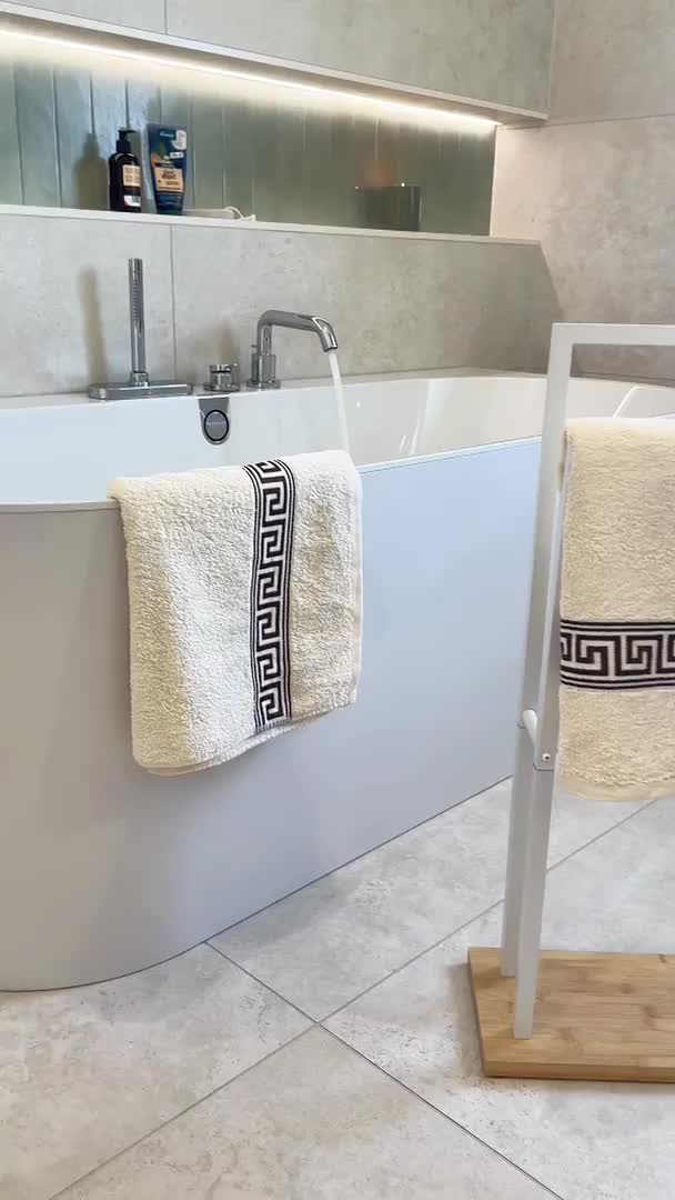 A krémszínű árnyalatokkal könnyedén kialakíthat egy természetes belső teret, amely a fürdőszobájában egyensúlyt és nyugalmat teremt. Egy vidéki hangulat és némi elegancia a krémszínű törölközőkkel érhető el, amelyek könnyedén összehangolhatók a föld színű elemekkel.