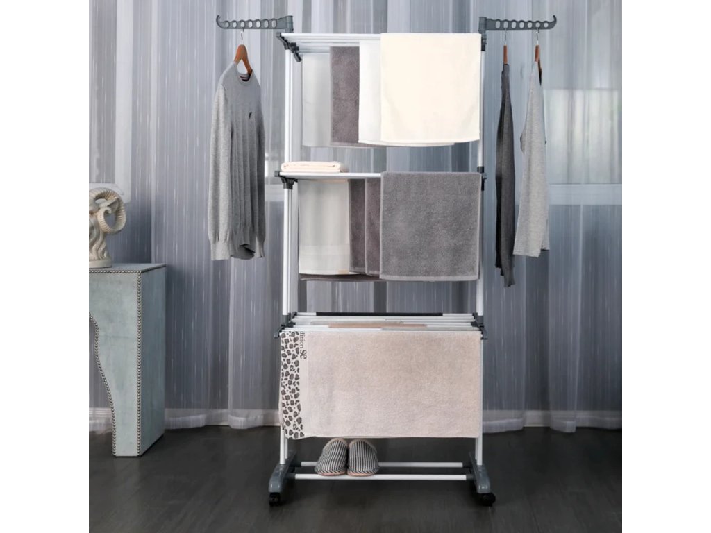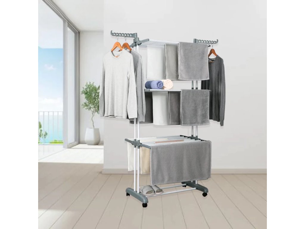 A több szint kialakítása miatt a szárító elegendő helyet biztosít nagy mennyiségű ruha szárítására egyszerre. A oldalsó karok ideálisak vállfák felakasztására, így az ingek vagy kabátok megtartják alakjukat. A robusztus kialakítás és a minőségi anyagok garantálják a stabilitást és a hosszú élettartamot.