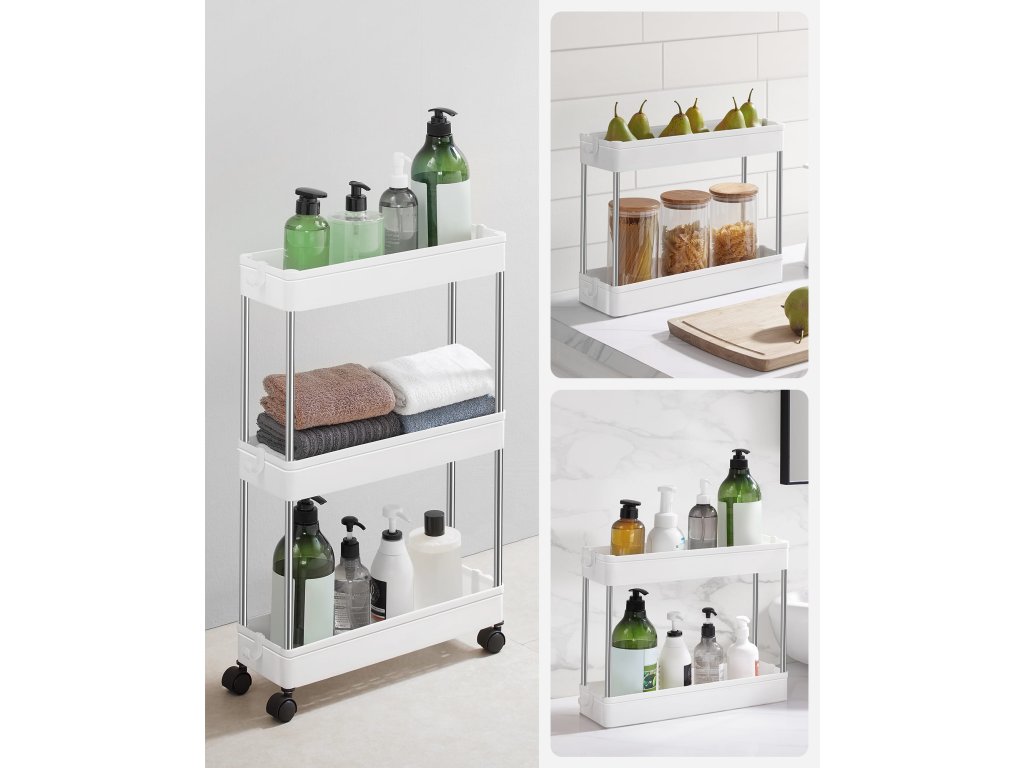 MOBIX keskeny polc kerekeken 3 kosárral, fehér