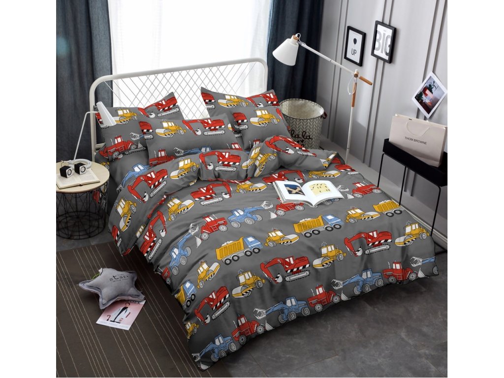 ÉPÍTŐGÉPEK szürke gyermek ágynemű)huzat