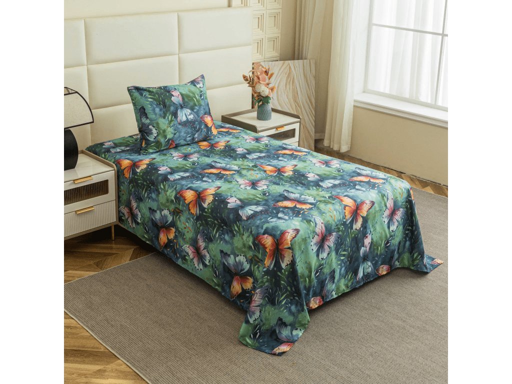 Mikroszálas lepedő 140x240 cm és párnahuzat 50x70 cm SZÍNES PILLANGÓ, színes