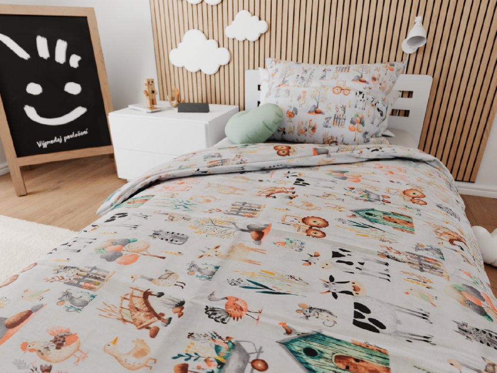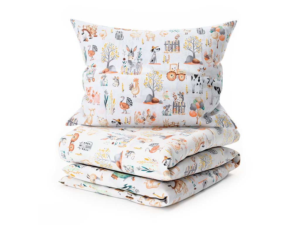 Pamut ágynemű bölcsőhöz HAPPY FARM fehér