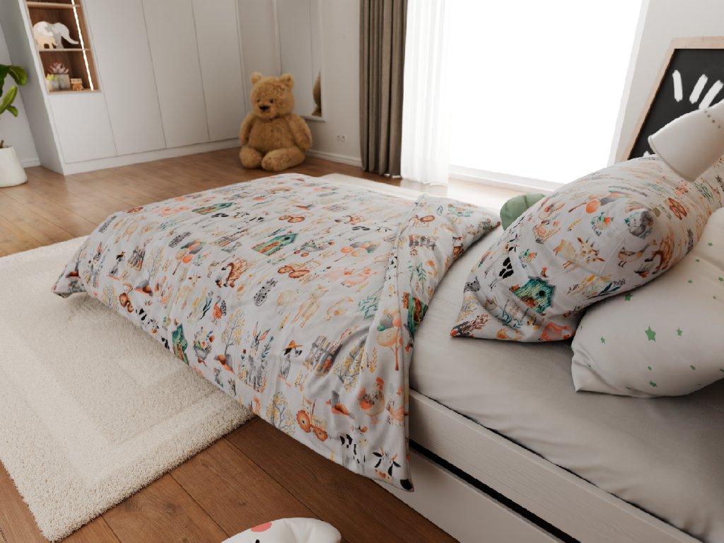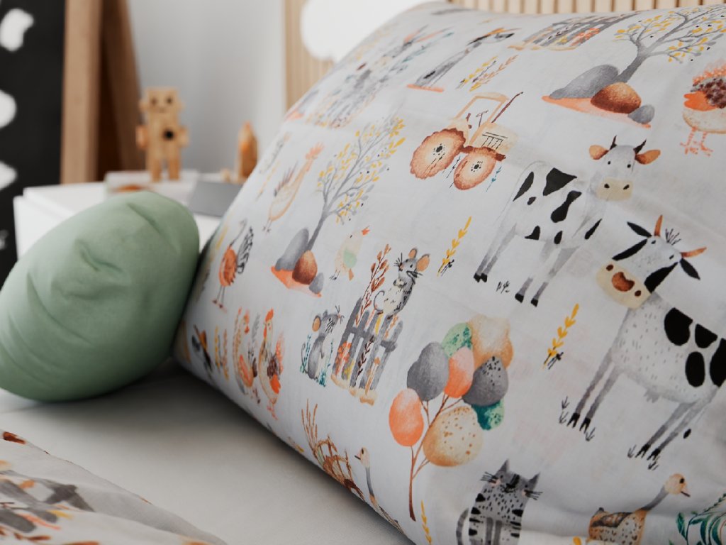 Az ágynemű 100% pamutból készült, amely kellemes tapintású, kíméletes az érzékeny gyermekbőrhöz és könnyen karbantartható. Ideális mindennapi használatra, biztosítja a gyermeknek az egész éjszakán át tartó puhaságot és légáteresztő képességet. A minőségi anyagnak köszönhetően megőrzi formáját és színeit többszöri mosás után is.