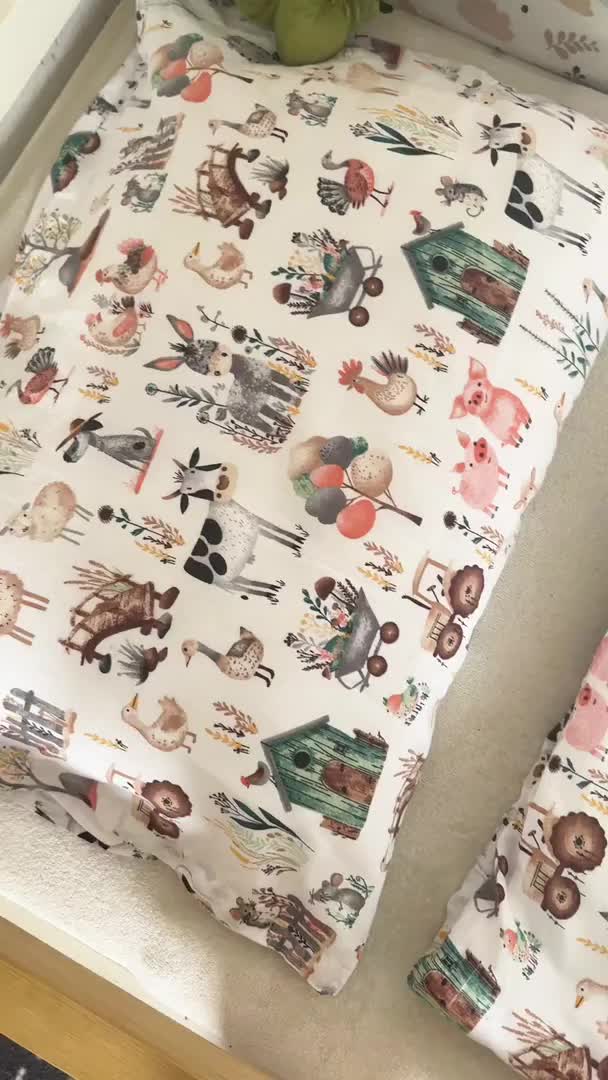 Biztosítsa gyermekének a nyugodt alvást a Pamut ágynemű bölcsőhöz HAPPY FARM -ban, amely elbűvöl vidám állati és farm motívumokkal. A fehér alap a kis bocik, bárányok, malacok és traktorok finom illusztrációival játékos és otthonos megjelenést kölcsönöz, amely minden gyerekszobához remekül illik.