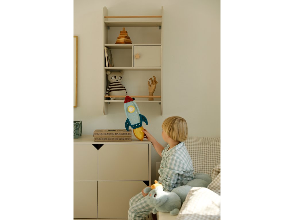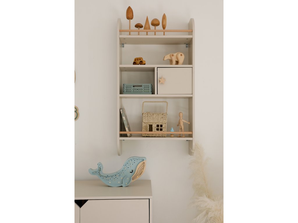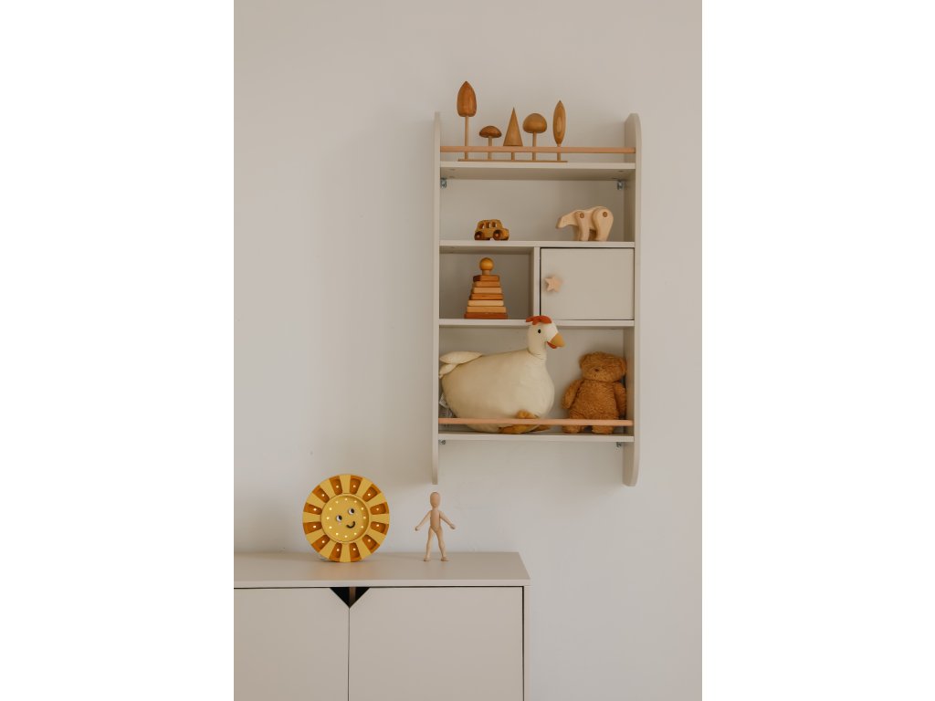 - Magasan a falra vagy a padló mellé is felszerelhető, lehetővé téve a gyermek számára a polchoz való könnyű hozzáférést,