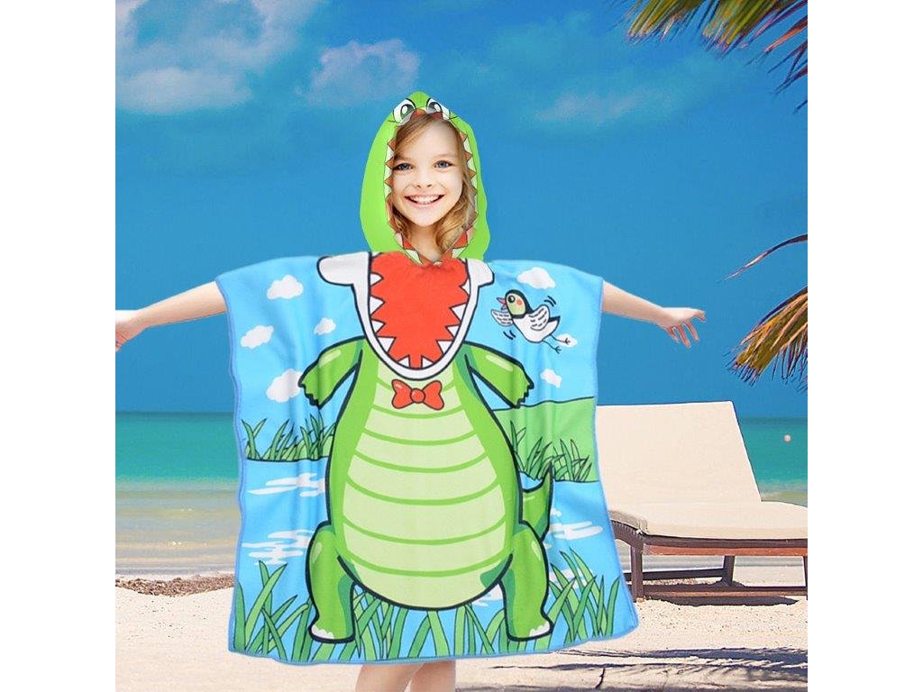 KROKODIL ÉS MADÁR kék gyermek poncsó 60 x 120 cm