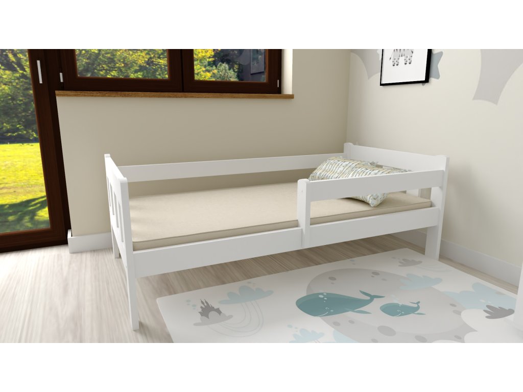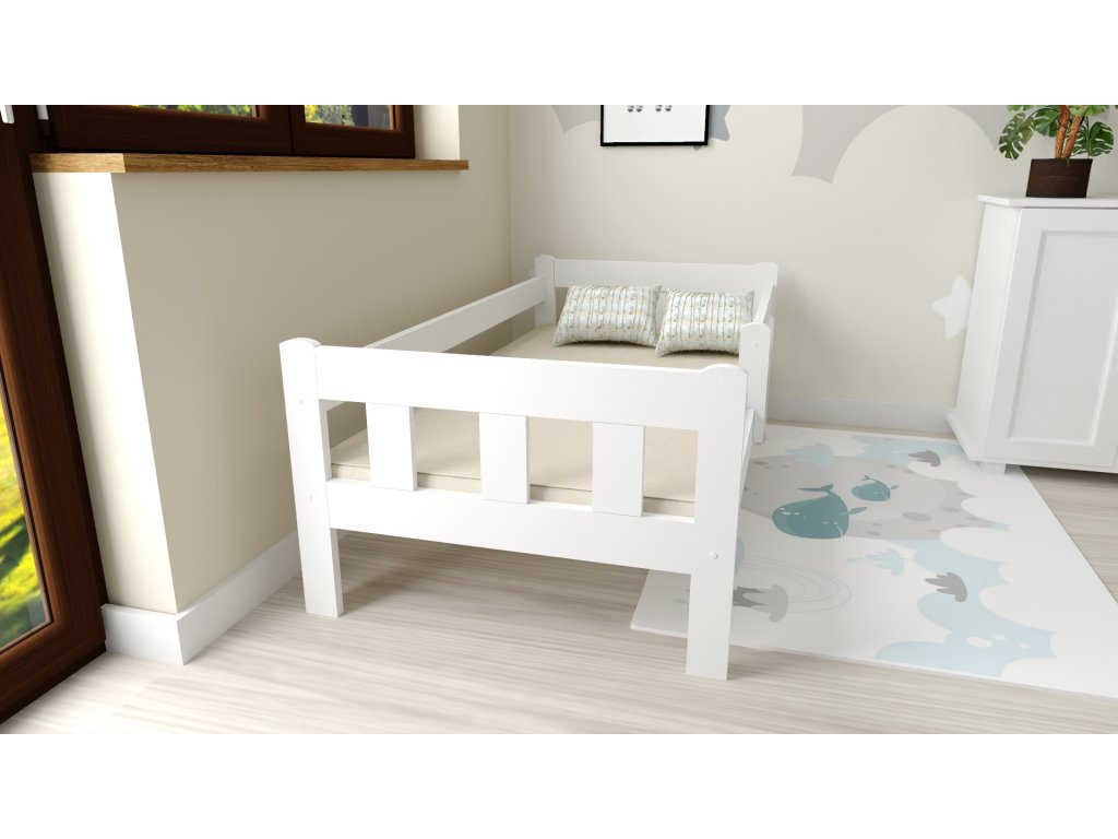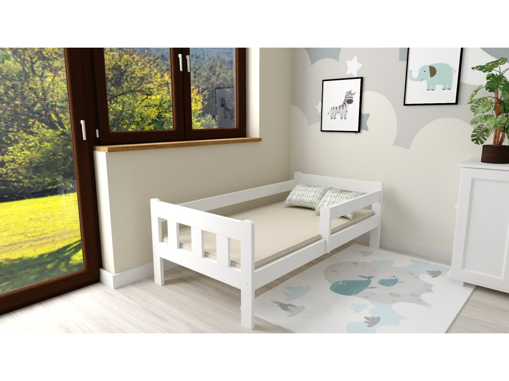 Gyermekágy NESTY fehér színben az elegancia, a funkcionalitás és a biztonság kombinációját kínálja. Alacsonyabb kialakítása ideális a kisebb gyermekek számára, és támogatja önállóságukat a lefekvésnél és felkelésnél. Tiszta vonalai és semleges színe kiemelik mind a modern, mind a klasszikus gyerekszoba belső terét. Az ágy remek választás azon szülők számára, akik gyermeküknek kényelmes és esztétikus helyet szeretnének biztosítani a mindennapi pihenéshez és álmodozáshoz.