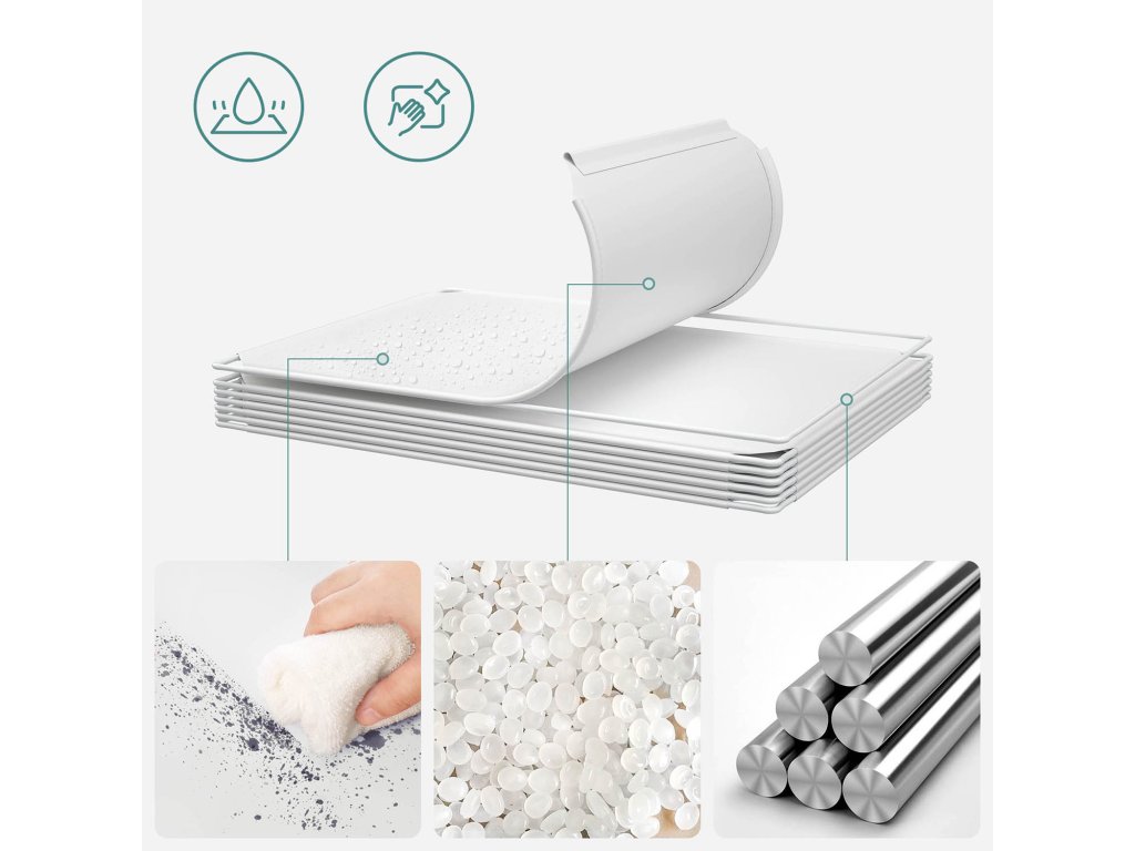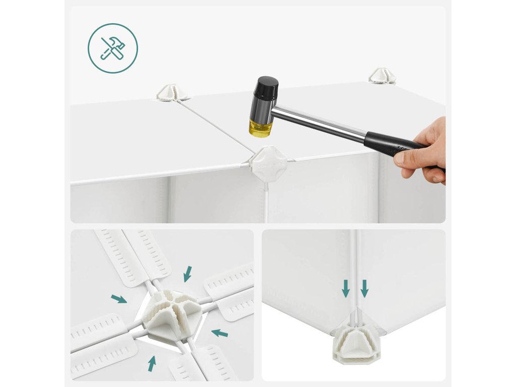 A szekrény PP műanyag panelekből, fém keretből és strapabíró ABS csatlakozókból áll, amelyek lehetővé teszik a térnek és gyermeke igényeinek megfelelő, rugalmas összeállítást. Könnyen karbantartható, nedvességálló és könnyen összeszerelhető, így praktikus kiegészítő a gyerekszobába. Az alkalmazkodóképességének köszönhetően a polcot változtathatja és átalakíthatja a gyermekek növekedése és igényei szerint.
