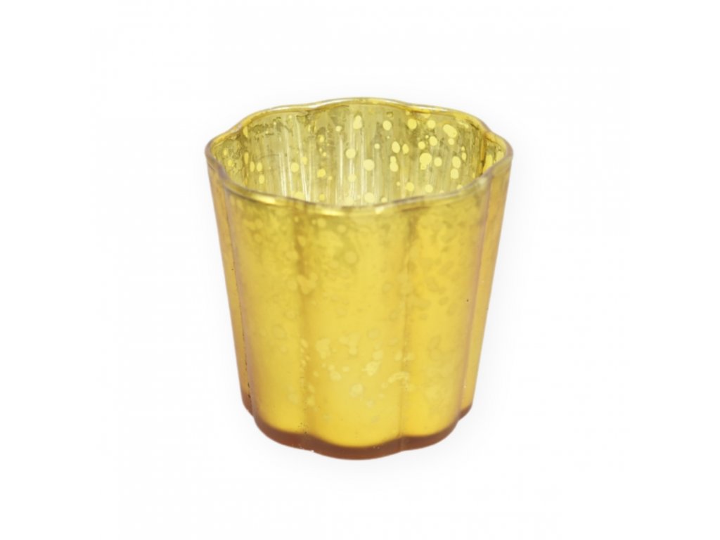 RAINBOW WAVES sárga üveg gyertyatartó, 8 cm