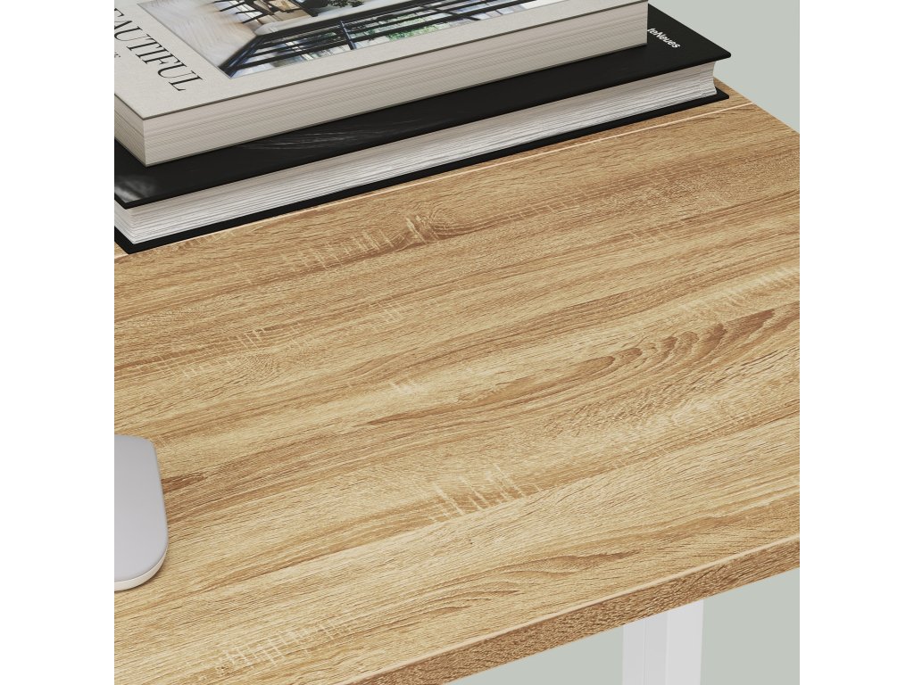 Funkcionális és stílusos megoldást keres otthoni irodájához vagy tanulósarkához? Ez az asztal és fotel szett a tökéletes választás mindazoknak, akik gyakorlati felhasználást szeretnének modern megjelenéssel ötvözni. Kompakt méretei és az asztal összecsukhatósága révén könnyen létrehozhat egy munkateret kisebb lakásokban is. Az elegáns fa dekor és fém konstrukció kombinációja tiszta és ízléses érzetet kelt, míg a kényelmes kárpitozott fotel biztosítja a komfortot még hosszabb munka közben is. Tegye örömtelivé az otthoni munkavégzést – egyszerűen és stílusosan.