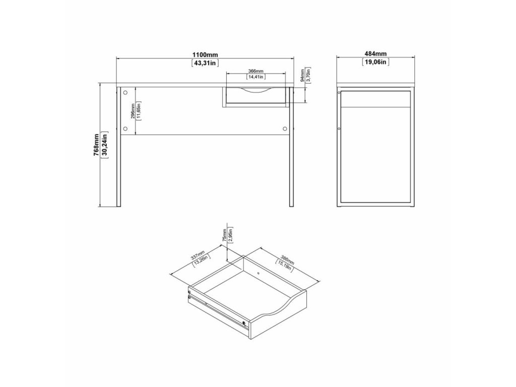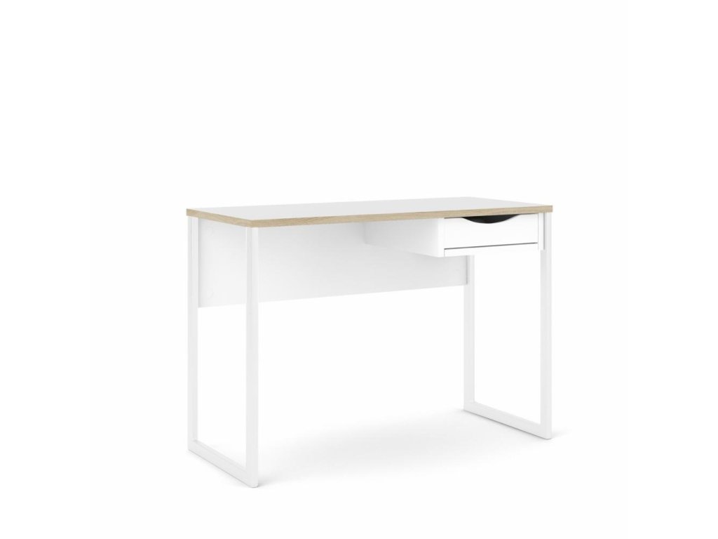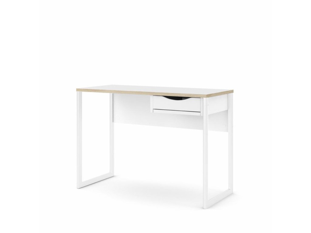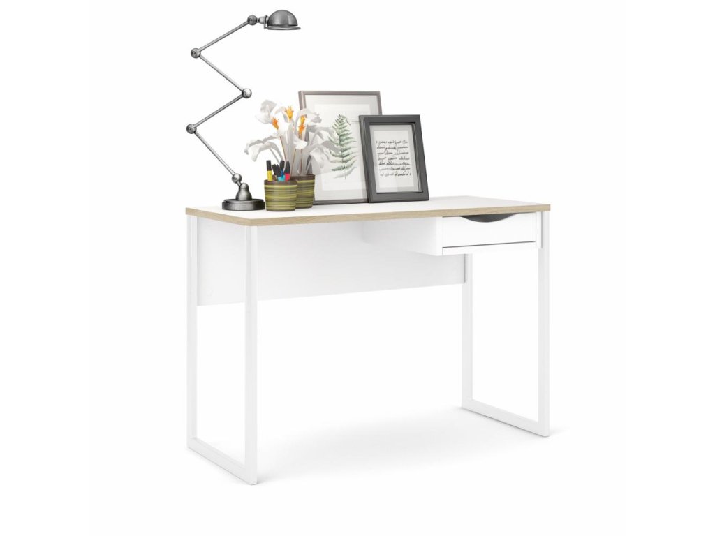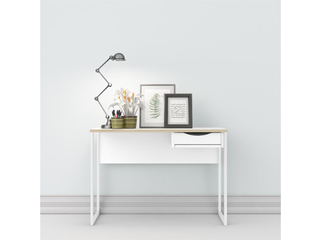 Fehér EFREM PLUS 513 íróasztal 1 fiókkal és tölgy dekorációval ellátott lappal