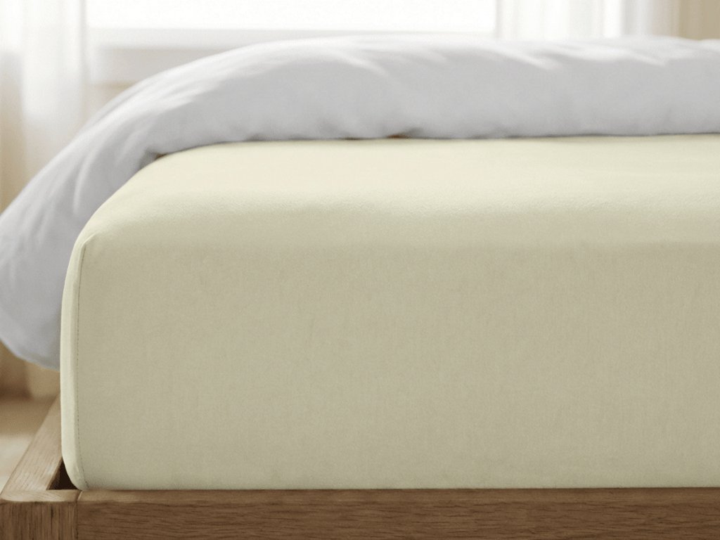 Jersey gumis lepedő lycrával világos krémszínű 180 x 200 cm