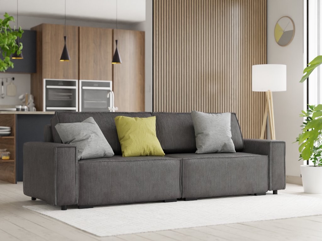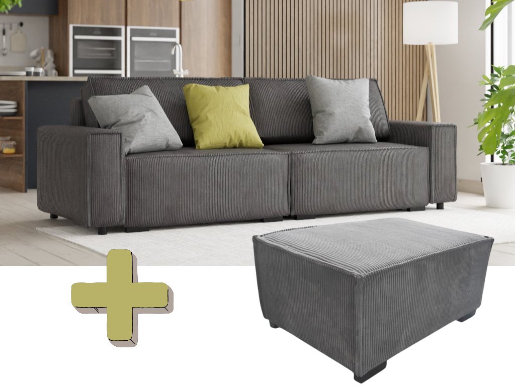 Kihúzható háromszemélyes kanapé és puff SMART SET, sötétszürke LINCOLN 90
