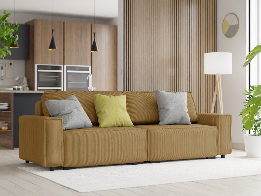 Kinyitható háromszemélyes kanapé puffal SMART SET, mustársárga