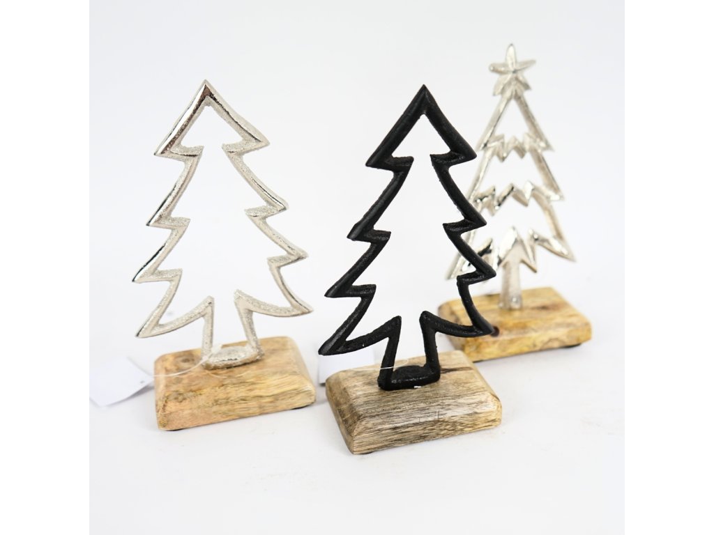 Karácsonyi dekoráció CHRISTMAS TREE mangófából, 17 cm, fekete
