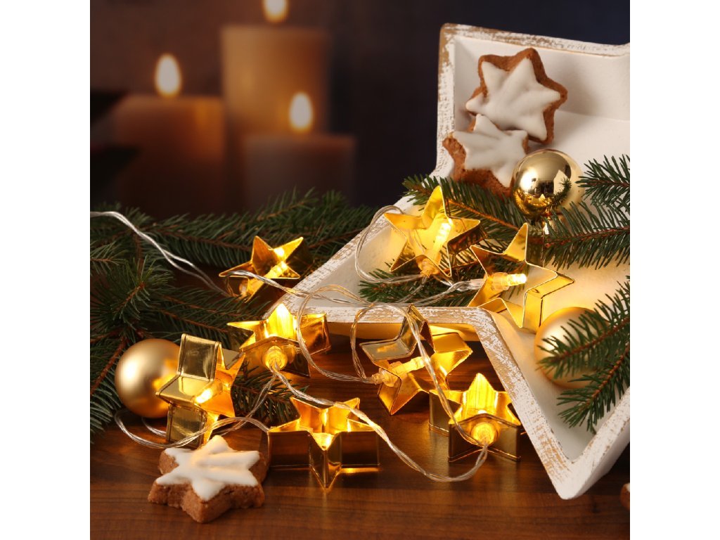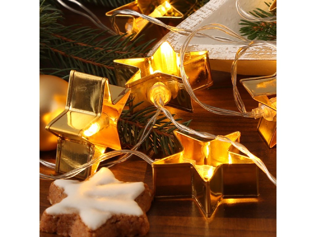 LED fénylánc GOLD STARS 140 cm arany