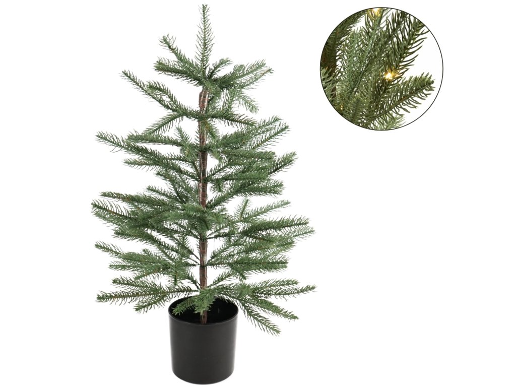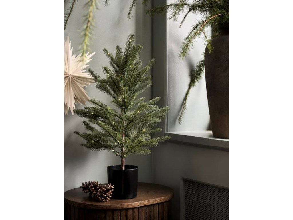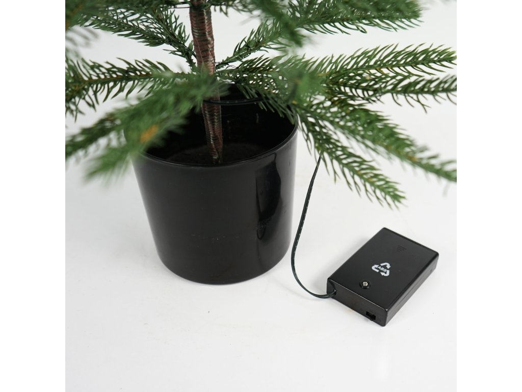 Műfenyő NORDIC LED világítással kellemes és elegáns karácsonyi hangulatot hoz otthonába. 60 cm-es magasságával ideális asztalra, polcra vagy komódra, ahol gyönyörű dekorációs középponttá válik. A fa finom LED fényekkel van ellátva, amelyek kellemes és meghitt világítást biztosítanak. A modern fekete virágcserép és a gallyak élethű megjelenése kiemeli stílusos kialakítását.