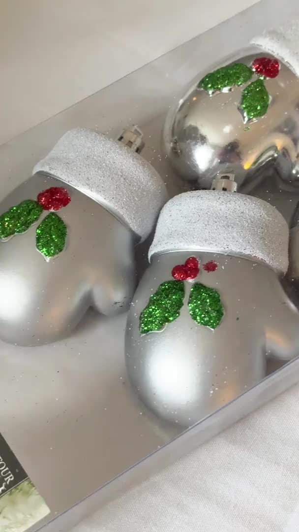 Műanyag karácsonyi díszek GLOVES 8 cm ezüst, 6 db szett