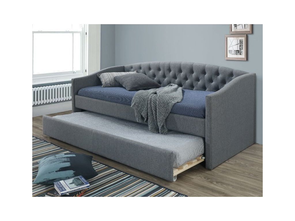Szürke kárpitozott ALESSIA ágy 90 x 200 cm